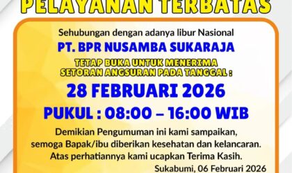 Kabarjournalist.com – Sebagai bentuk pelayanan kepada Nasabahnya, Bank Perekonomian Rakyat (BPR) Nusamba Sukaraja memberikan pemberitahuan. Kami…