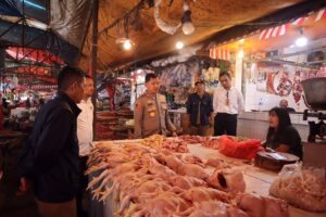 “Hari ini, Polres Sukabumi Kota bersama Satgas Pangan Kota Sukabumi melakukan pengecekan ke beberapa pasar yang ada di wilayah Kota Sukabumi, baik pasar Pelita, pasar Ramayana, pasar Sukaraja, bahwa saat ini ada pemberitaan tentang adanya kenaikan harga ayam, yang biasanya 35 ribu menjadi 37 ribu,” ujar AKBP Ari, usai sidak di pasar Pelita Sukabumi.