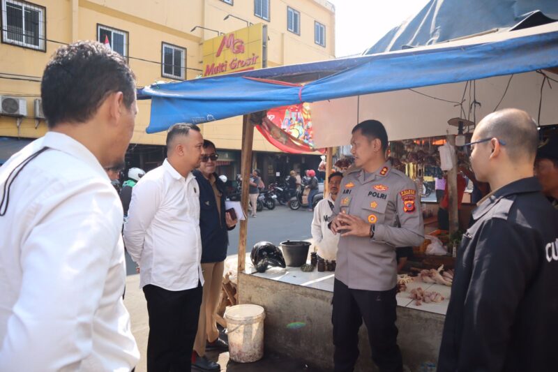 Adalah Kapolres Sukabumi Kota, AKBP Ari Setyawan Wibowo didampingi Kasat Reskrim dan Diskopdagrin (Dinas Koperasi Perdagangan dan Industri) Kota Sukabumi melakukan pengecekan dan wawancara dengan sejumlah pedagang pasar untuk mengetahui informasi mengenai kenaikan harga sejumlah bapokting, utamanya harga ayam potong.