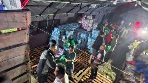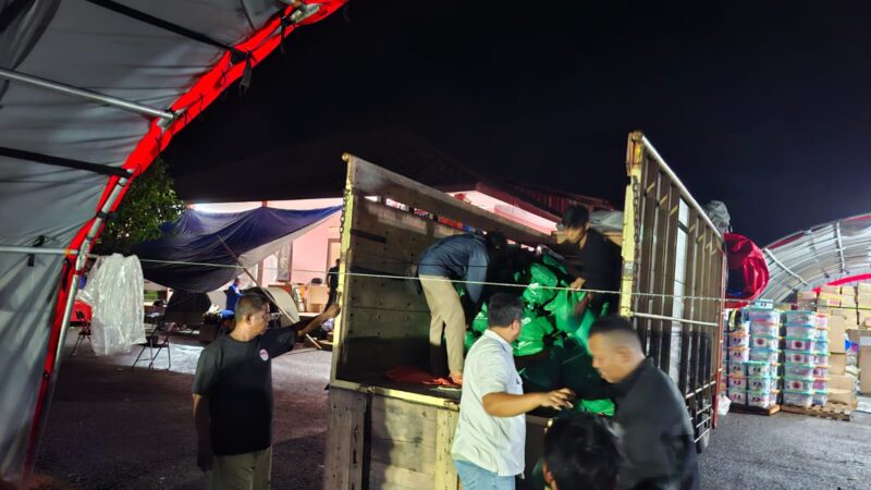 Saat satu truk berisi bantuan dari Pupuk Kujang Cikampek datang, para petugas, relawan dan tim dari Pupuk Kujang dengan sigap membongkar muatan. Paket logistik beralih dari satu tangan ke tangan lainnya, dari truk menuju tenda logistik untuk disusun sesuai jenisnya.