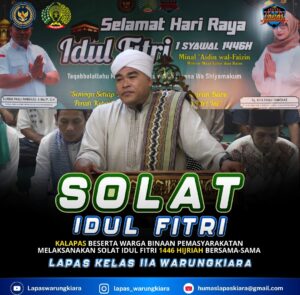 Walaupun sedang menjalankan masa pidana, seluruh Warga Binaan Pemasyarakatan Lapas Warungkiara mengikuti sholat Idul Fitri.